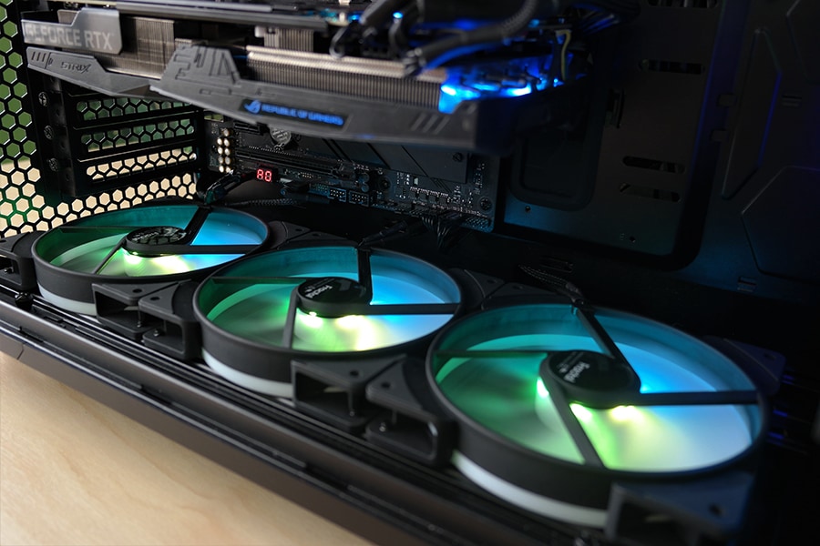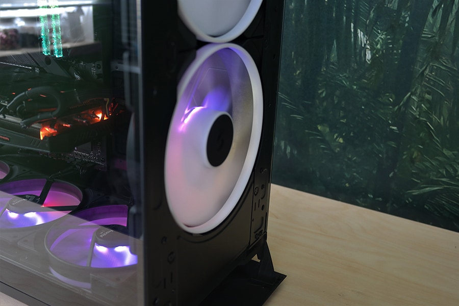 Ventilaatorite puhul on mõlemad nii valgustuse kui ka toite kaablid piisavalt paikad, et ulatuda igasse korpuse nurka. RGB kaablite puhul on mõnus see, et saad kõik ühendada üksteise otsa tekitades ahela ning alles viimase pesa pista emaplaadi või vastavasse kontrollerisse. Samas on arusaadav, miks korpus ei tule RGB mooduliga, sest kõik teised korpuse variatsioonid on ilma RGB toeta. Toiteploki paabelite majandus oli piisvalt mugav ning kaabli ülejäänud osa sai ilusti peita toiteploki juures olevasse vahealasse.
