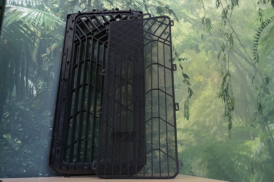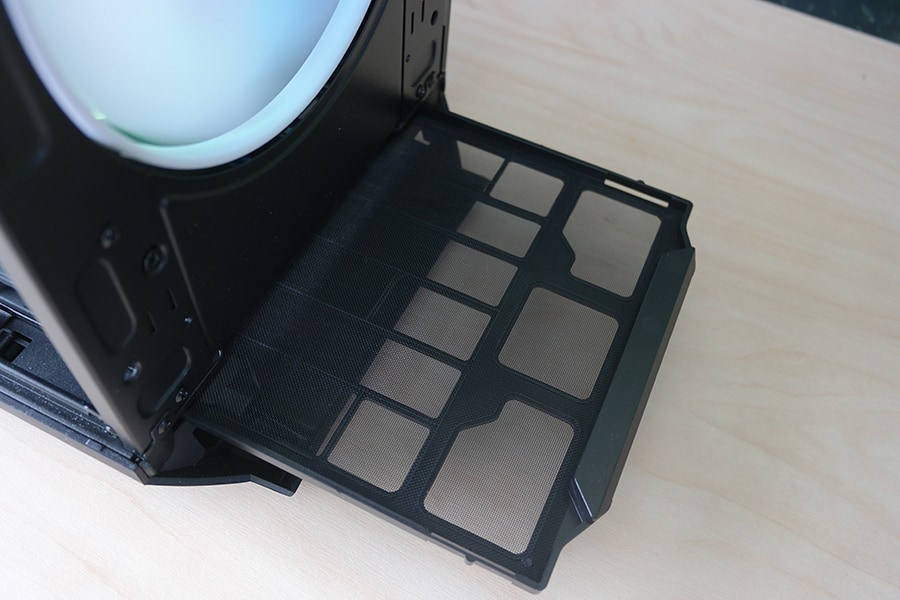 Esipaneel koosneb kahest osast – disain ja filter. Paneeli saab eemalda täiesti tööriistavabalt tõmmates ülemist osa enda poole, mille tulemusena kinnitused tulevad hoiu kohtadest lahti ja paneel on vaba. Võib tekkida küsimus, et miks ei ole esipaneel turvaliselt kinnitatud kruvidega nagu ka pealmine siis sellele on ideena kerge vastus – kui ei kavatse korpust kanda tagurpidi siis ei ole võimalust, et esipaneel tuleks kinnitustest lahti. Korpus juba ise kaalub 13.7 kg, mis väga ei kütuse seda tagurpidi keerama. Tolmufilter on ilusti eemaldatava ning eemaldades esipaneeli pääseb ligi ka krouse põhjas olevale filtrile.
