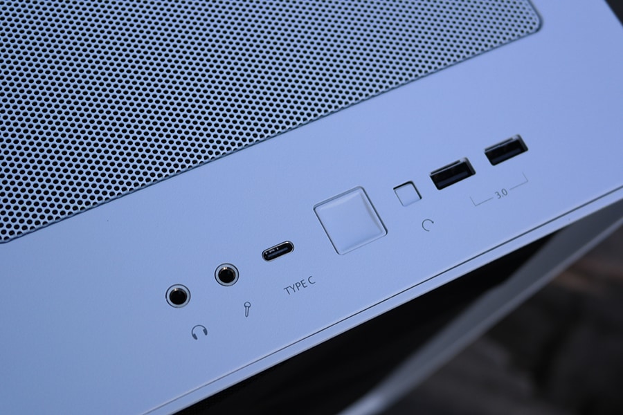 Maksimaalne pikkus, mis on toetatud GPU puhul on 491 millimeetrit. Esipaneelilt leiab kaks USB 3.0 Type-A pesa ja ühe Type-C pesa. Lisaks siis toite ja taas kivitamise nupp. Lisaks on eraldiseisvad pesad mikrofonile ja klappidele.