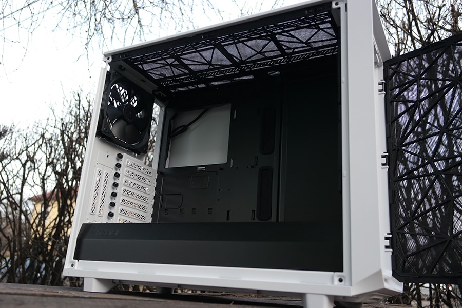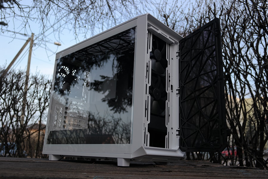 Rääkimata sellest, et ehitamiseks on vaja nii või naa uks eemaldada kui on plaan paigutada esiosasse radiaator või vahetada välja ventilaatorid. Üks häid muutusi on lisaks veel esipaneeli filtri materjali muutus, mis asendati nüüd nailoniga – eelnevate korpuste filtrite kohta on raske midagi öelda, et mis materjaliga oli tegu, aga nüüd peaks olema olukord parem just jahutuse mõttes, et õhuliikumine on parem. Lisaks on Fractal oma manuaalis maininud, et parema õhuvoolu saamiseks tasub eemaldada esipaneeli filter. Info mis kogenumatele ei ole just nii informeeriv kui algajatele, kes juhendist mõnikord isegi näpuga jälge ajavad.
