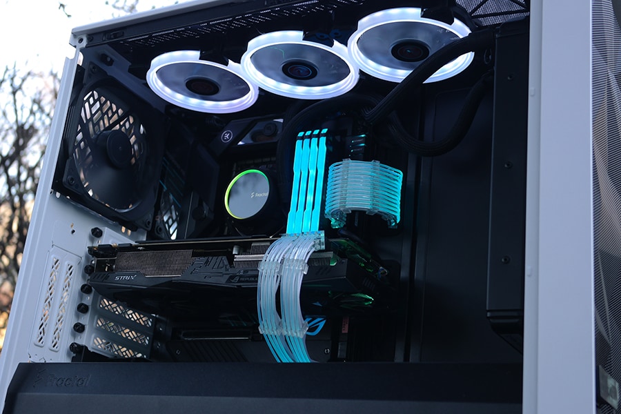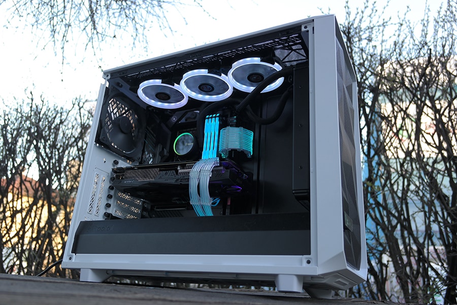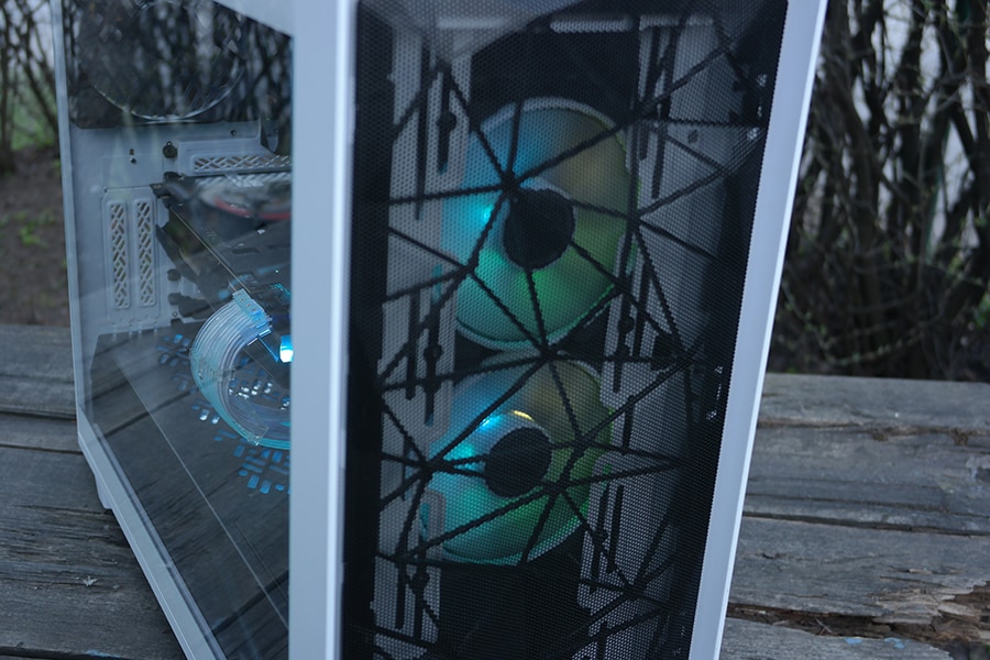 Meil on raske hinnata korpuse efektiivsust, kuna meil ei ole võimalik pakkuda suurt võrdlust teiste korpustega, kuid kasutuse poolest on Meshify 2 ikka korralikult hea õhuvoolu tagamiseks. Võimalus on eemalda näiteks ülemine ja esi paneeli tolmufiltrid, mis arvatavasti võimaldaks rohkem õhku liigutada korpuses. Meile endale Meshify 2 korpuse disain meeldib oma minimalistliku ülesehitusega. Valge toon on ilusti välja tulnud ning ei jäta odava läikiva külmkapi muljet. Küljeklaas on maitse asi, et kas meeldib rohkem toonitud või täiesti läbipaistev variant. Korpuse vesijahutuse kohta me sarnaselt ei saa midagi lõpplikku öelda, kuna puuduvad vastavad komponendid.