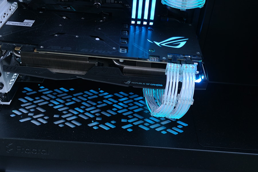 Jälgides trende, siis korpuses on olemas võimalus lisada graafikakaart vertikaalselt – asetusega peaaegu vastu korpuse klaasi. Kuna ruumi on vähe tasukus minna Fractali teistsuguse lahendusega, mis võimaldab tuua graafikakaarti emaplaadile lähemale muutes horisontaalsed PCI-e pesad üheks vertikaalseks. Manuaalis on märgitud, et soovitatud on vesijahutusega GPU, kuid see ei pea nii olema, sest tuues GPU emaplaadile läheme on tunduvalt parem, kui see ülesehitus kus GPU on peaaegu, et vastu klaasi.