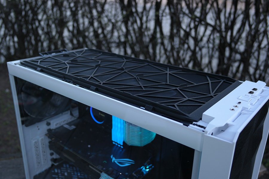 Süsteem on kindalt parem kui vanadel mudelitel, kus eemaldamiseks oli nupp korpuse taga ja paneel hüppas lahti vedrude põhisel süsteemil. Fractal on lisanud paar kruvi ülemise paneeli täielikuks kinnitamiseks, mis tagab selle, et paneel ei tule transportimisel ära, kuid teeb puhastamise protsessi raskemaks, kuna kruvid kinnituvad paneeli korpuse seest. Ülemise paneeli eemaldamisel on võimalik pääseda ligi tolmufiltrile, mida saab lihtsalt libistamise efektiga vabastada. Järgnevalt on alles jäänud ventilaatorite ja radiaatori kinnitusdetail, mida saab ka täielikult eemaldada kui vastavad kruvid korpuse seest eemaldada.