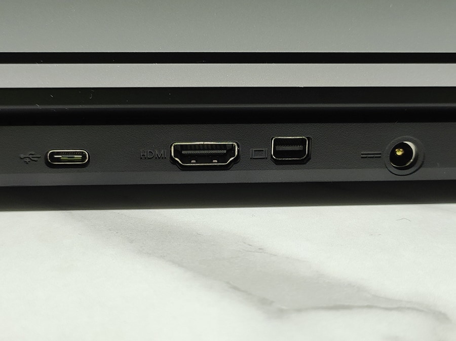 Tagaküljel asuvad toitepesa, USB Type-C port, HDMI port ning Mini DisplayPort.