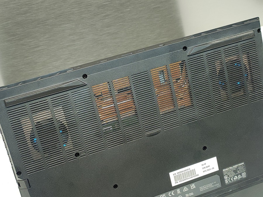 Stressitestide ja intensiivsete mängusessioonide ajal tõusid pinnatemperatuurid kuni 45°C-ni, mis on enamiku kasutajate jaoks talutav. Nende testide käigus saavutas CPU maksimaalseks temperatuuriks 90°C, samas kui GPU temperatuur tõusis 70°C-ni. Kuigi need temperatuurid on kõrged, on need mänguri sülearvutite puhul tugeva koormuse all tavalised, näidates, et jahutussüsteem hoiab tõhusalt ära ülekuumenemise, ohverdamata seejuures jõudlust.
