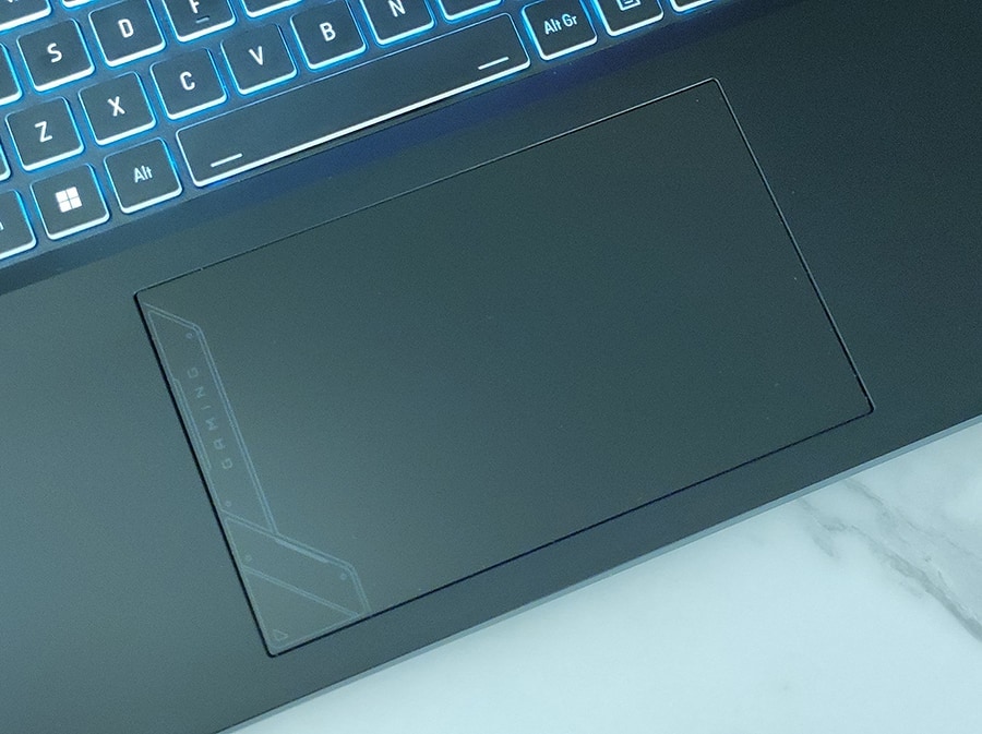 Klaviatuuril on numbriklahvistik, täissuuruses nooleklahvid ja piisavalt hele RGB-valgustus. Klaviatuur on praktiliselt äärest-ääreni, mis võib olla ebamugav ning suure puudusena on sülearvuti nurgad keskmisest teravamad, mis võib samuti omajagu ebameeldiv olla.