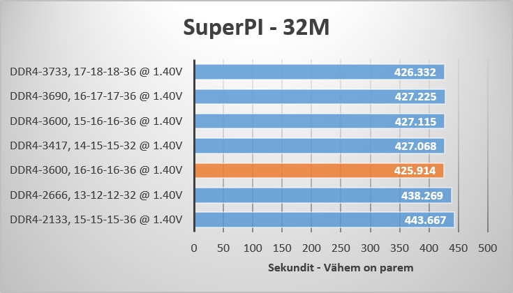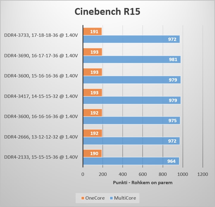 Peaks ideena näitama arvuti renderdamise võimsust, kuid mälud sellise lühikise testi juures mängivad väga vähe rolli ja enamassti võib lihtsalt erinevus tekkida mõõtmisvigade tõttu. Kuid tegu on jätkuvalt väga populaarse testiga, mida iga lugeja saab kodus järgi proovida ja oma tulemusi võrrelda meie saadud tulemustega.