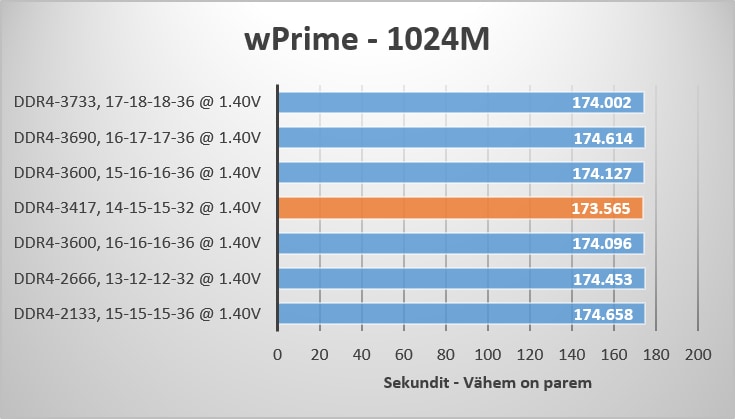 Kuna mälude testimine on meie jaoks jätkuvalt suhteliselt uus teema, siis sai valitud eelpool mainitud programmid. Idee oli neid kasutada paarides, et mitte jääda kindlaks ainult ühele programmile ning jälgida seaduspärast mustrit. AIDA64 Extreme’i abil sai testitud latency ja kiiruse muutusi. SuperPI ja wPrime, et tekitada olukorda, mis oleks sarnane töörežiimile, sarnase eesmärgiga sai kasutatid CINEBECH R15 ja stabiilsustest sai tehtud SiSoftware Sandra abil. Kõik tulemused olid ootuspärased ning mingeid erilisi probleeme ei esinenud, välja arvatud siis BSOD, mida esines väga tihti.