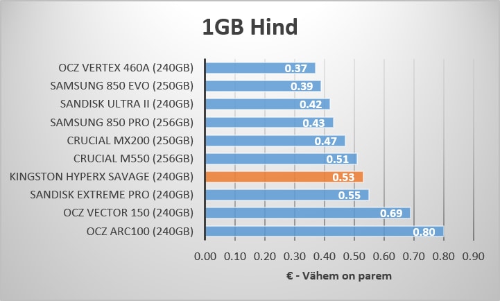 Järgneval graafikul on välja toodud vastavate seadete 1GB hind ning seejärel seadme enda hind.