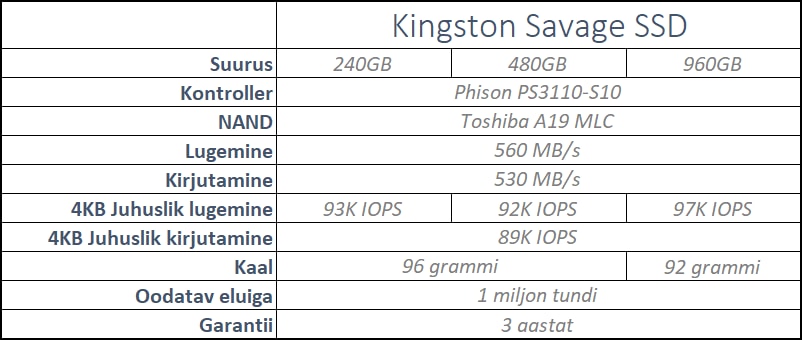 Kontroller, mida Kingston Savage SSD puhul kasutab on Phison PS3110-S10 ehk muidu ka tuntud kui S10, mille eelkäia oli eelmisel generatsioonil S8. Kui rääkida S8-st, siis see kontroller jäi turule hiljaks ja ei suutnud kõrgema otsa seadmetega võistelda ning jäi seetõttu tagaplaanile. S10 aga seevastu on Phisoni uus katsetus seada ennast eksklusiivsemasse ossa turul.
