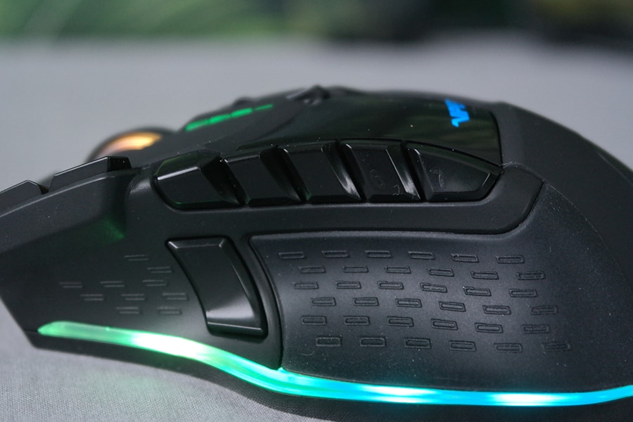 Hiire vasakul küljel on seitse nuppu ning lisaks pöidla juures veel üks ekstra nupp (sniper). Vaikeseadistusena on kõige ülemised nupud mõeldud olema tagasi ja edasi funktsionaalsusega ning ülejäänud (sh juba eelseadistatud nupud) saab kasutaja kergelt ümber programmeerida. Kuna nuppe on üksteise kõrvale pressitud suurel hulgal, siis hiirt ostes tuleb arvestada, et nuppude asukohtadega harjumine võtab aega, ehk vähemalt nädal aega kuluks lihtsalt harjumisele.