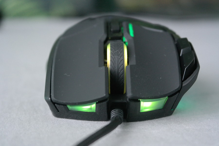 Rulliku kohal on veel kaks klahvi, millest esimene on mõeldud hiire profiilide valikuks ning teine DPI muutmiseks. Nuppude kõrval asuvad LED indikaatorid annavad mugavalt märku praegusest profiilist (valgustatud ribade arv) ja DPI seadistusest (ribade värv).