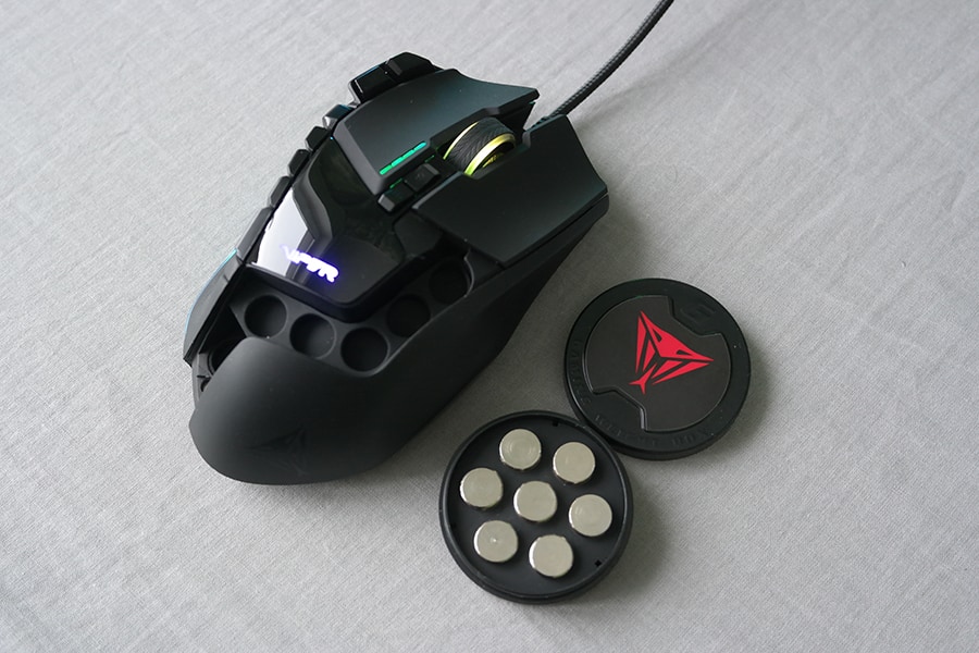 Hiire alumisest osast alates paikneb sik-saki kujuline eemaldatav kate, mille alla on võimalik soovi korral lisada raskuseid. Vaikeolekus kaalub hiir ~112 grammi, kuid lisada on võimalik seitse ~5.6 grammist raskust, tuues maksimaalse raskuse 146 grammini.