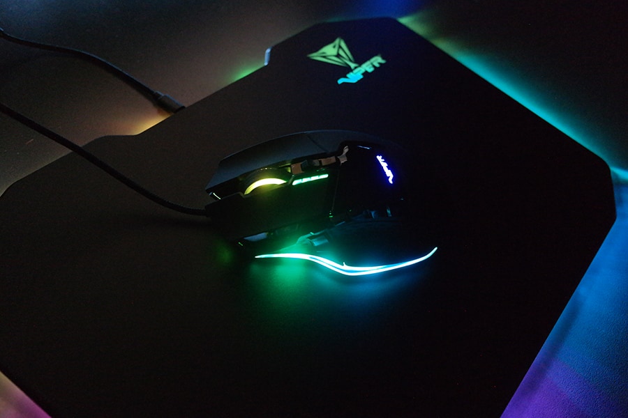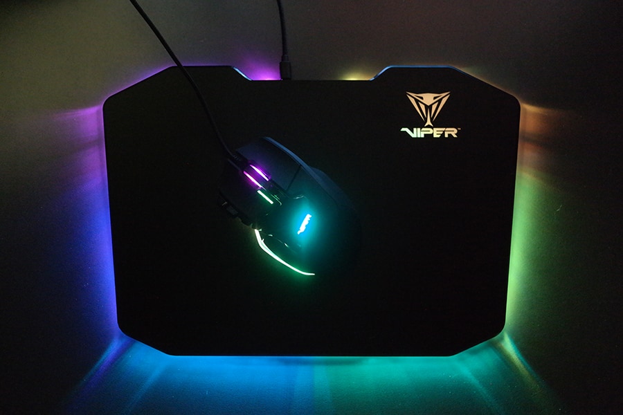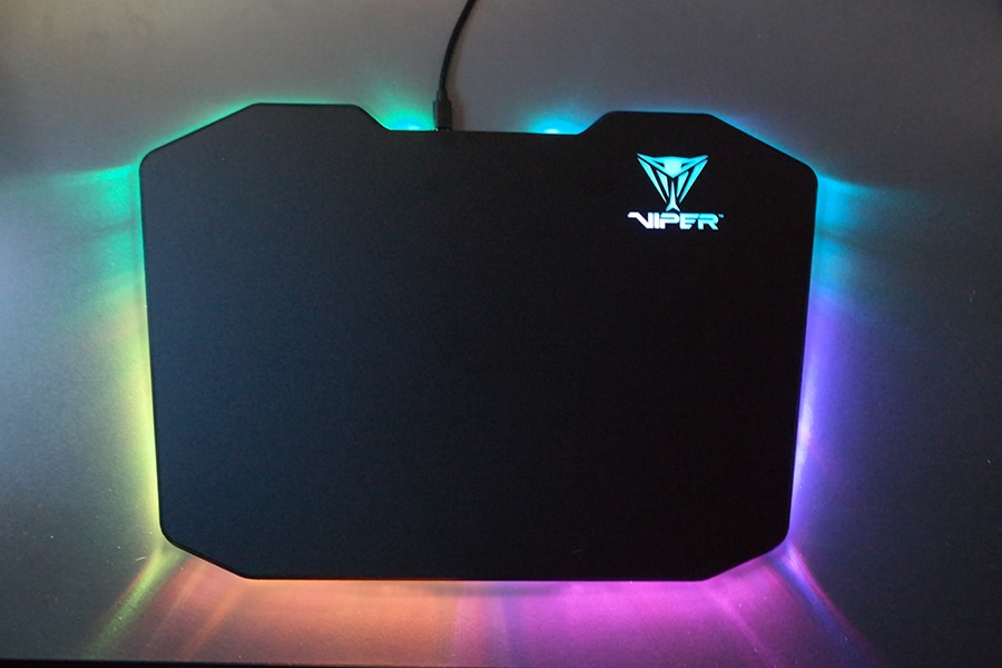 Lisaks hiirele, klaviatuurile ja peakomplektile saabus meieni ka Viperi LED hiirematt. Tegemist on kuue-tsoonilise LED matiga (ei ole adresseeritav). Hiiremati suuruseks on ~35x24 cm ning mati alune on täielikult kaetud libisemisvastase kummiga.
