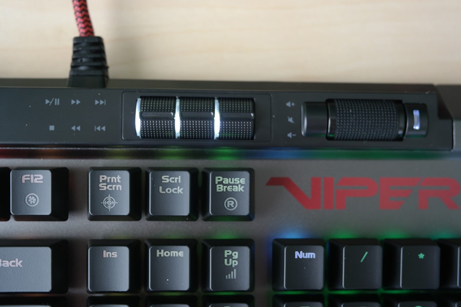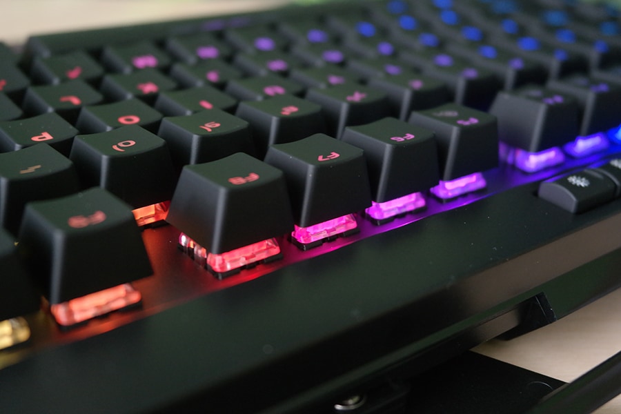 RGB nuppe kasutades on võimalik muuta valgustuse intensiivsust (valikus on kolm eredust + välja lülitamine), režiimide kiirust ja suunda (kasutades nooleklahve) ning muidugi ka režiime vahetada (nuppude kaudu on võimalik valida wave, reactive, snape, rain drop, pulsing color shift ja static color shift režiimide vahel) ja/või välja lülitada. Peale klahvide on valgustatud ka klaviatuuri küljed, valgustus ise on ere ning kergesti märgatav ka päevasel ajal.