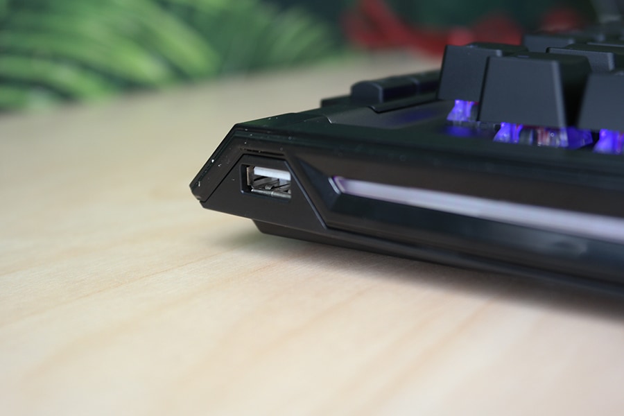 Kui üldjuhul on traditsiooniks saanud, et USB pesad klaviatuuridel on ehitatud kohe toitekaabli kõrvale, siis V770 puhul on kasutatud omapärast lähenemist ning port on paigutatud klaviatuuri vasakule küljele ning audio port paremale, mis olenevalt kasutaja eelistusest võib olla nii positiivne kui ka negatiivne.