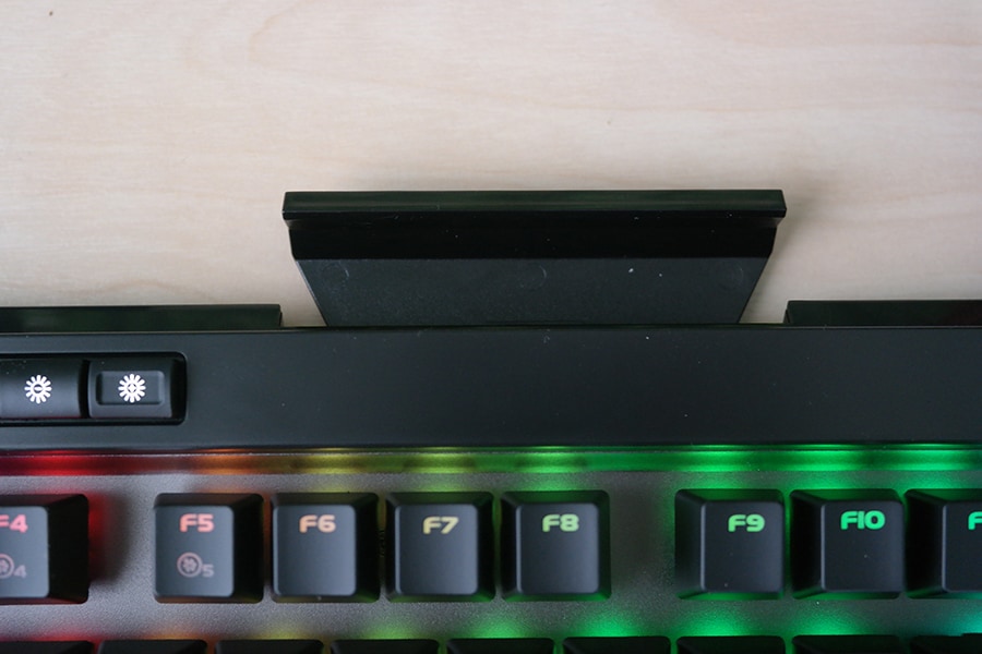 Täiesti unikaalse lisana on klaviatuuri sisse ehitatud hoidik kas telefonile või mõnele muule nutiseadmele, mis meie arvates on väga asjalik lisa. Kaabel on kvaliteetselt põimitud ning jaguneb neljaks – HD audio ühendused (mikrofon ja heli), USB toide ja USB pordi toide.
