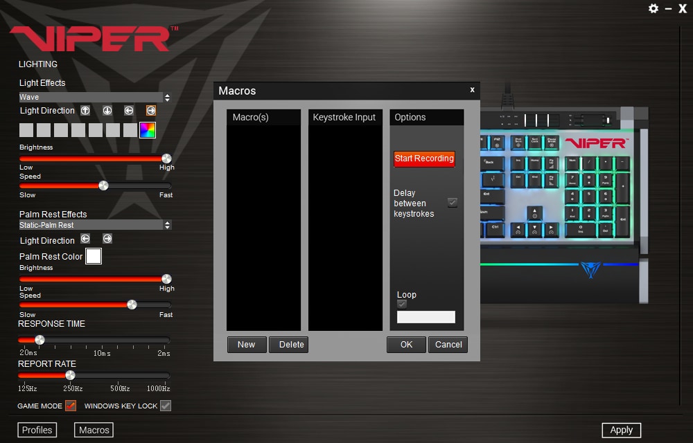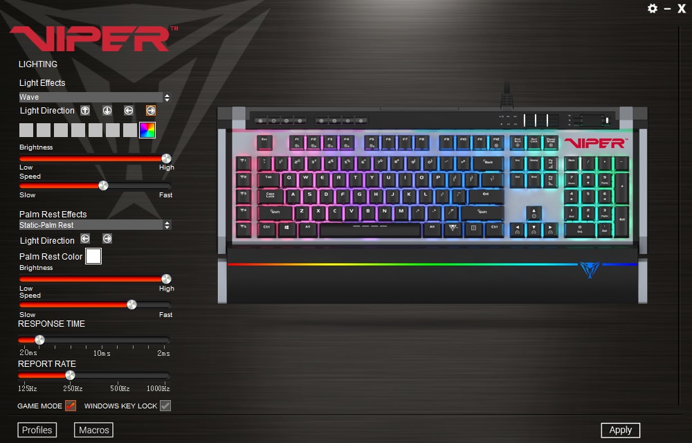Tarkvara on ise väga otsekohene ja selge, kõik tegevused tehakse ühes aknas, olgu selleks valgustuse muutmine klaviatuuril või randmetoel, reageerimisaegade muutmine, profiilide ja makrode seadistamine või Game Mode’i üles seadmine.