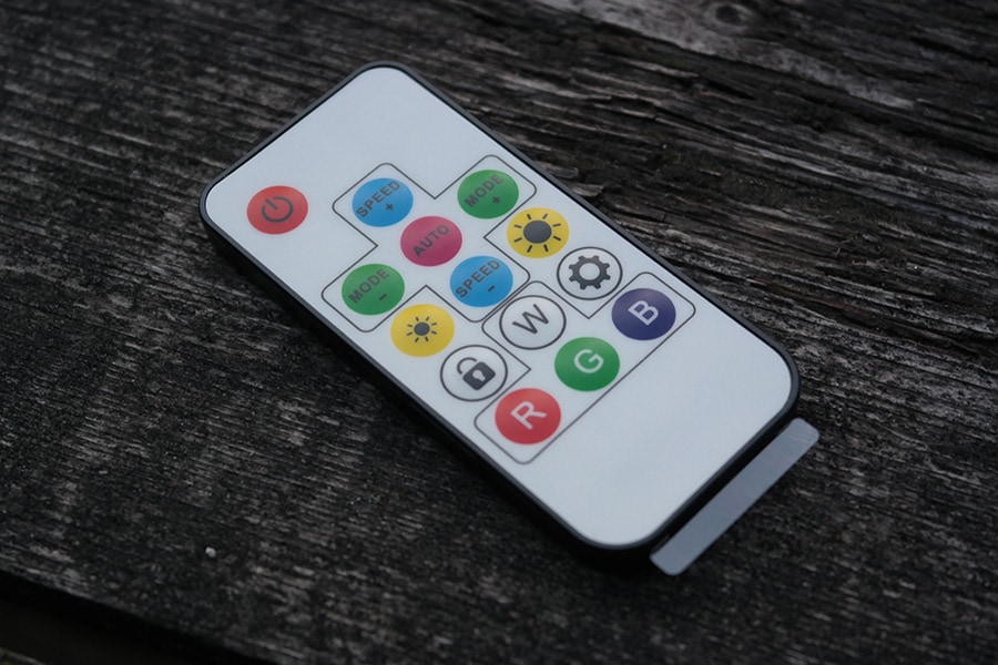 Puldil on kokku 13 nuppu + sisse/välja lülitus. Neli nuppu (R, G, B, W) sätivad ventilaatorid staatilisse värvi, speed + ja – muudavad režiimi kiirust, mode + ja – muudavad režiimi, kaks nuppu muudavad heledust, auto muudab režiimi iga 10 sekundi järel.