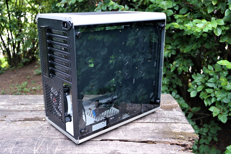 Meieni jõudis hall klaaspaneelidega korpus - nii esi- kui ka tagaosa on karastatud klaaspaneeliga. Korpus on üllatavalt väike ning on isegi väiksem kui paljud mATX korpused (korpuse mõõdud on 210×360×366 mm). Korpusega tuleb kaasa üks 120 mm LED-ventilaator, emaplaadile mõeldud alarm, kaks kaablikinnitit, insalleerimisjuhis ning kruvid järgmistele komponentidele: emaplaat (üheksa), PSU (neli), 2.5" HDD (kaheksa) ja 3.5” HDD (neli).