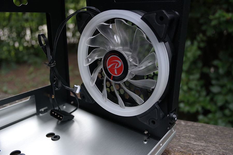 Lahenduseks oli siis eemaldada kinnitus ja panna jahuti otse korpuse külge, mille tõttu tekkisid probleemid ATX emaplaadiga, kuna jahutus oli täpselt vastu emaplaati, mille tõttu võtsime ette mATX emaplaadi. Kinnitus mida RAIJINTEK pakub on suurepärane - peale selle, et see lihtsustab jahuti paigaldamist on kinnitus ehtud sellisena, et ta liigutab radiaatorit korpusest eemale, et ei tekiks sarnast probleemi juhtmetega nagu seda juhtus meil.