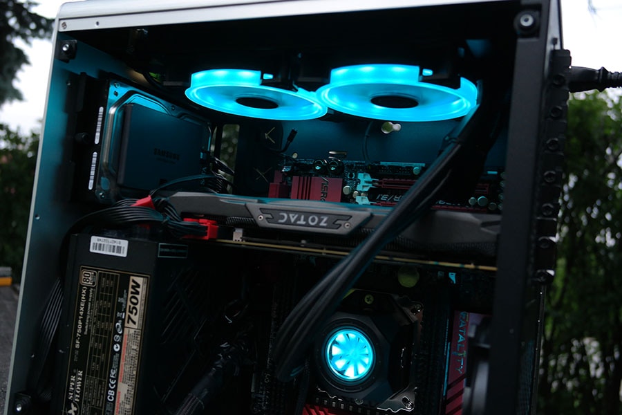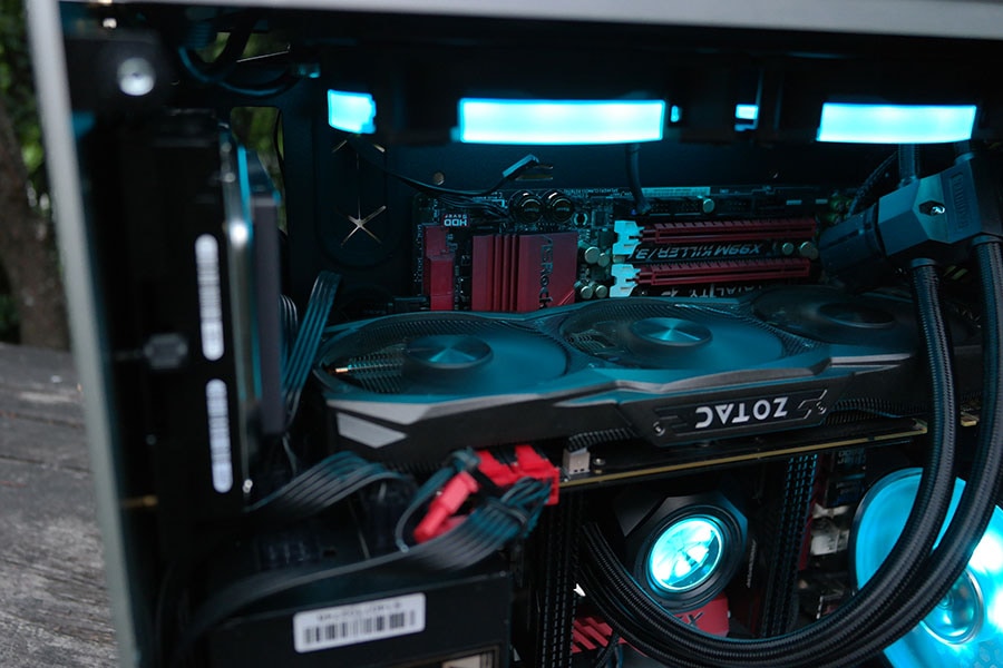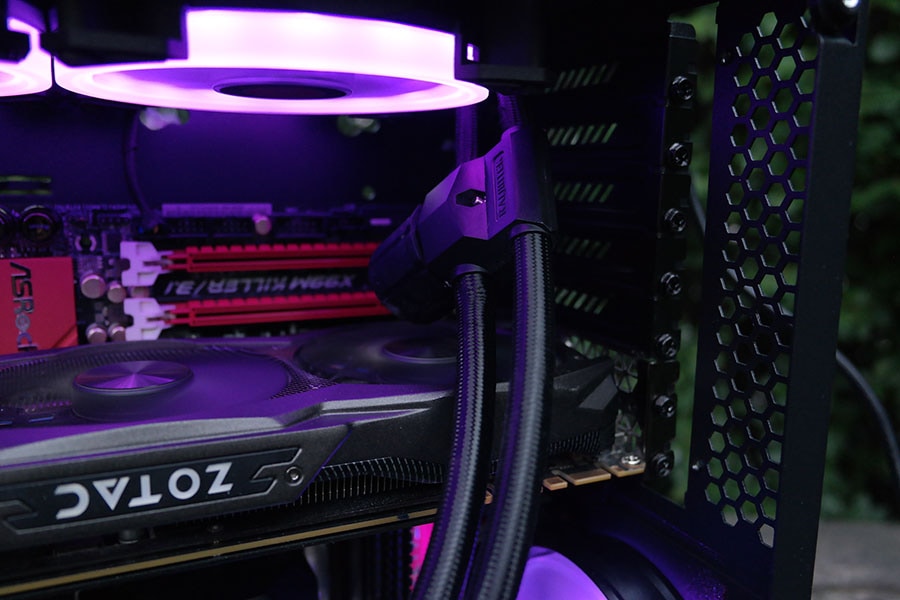 Jahutuse mahtuvuse probleemi tekitasime endale ise, kuna tahtsime RAIJINTEK’i huvitavat vesijahutust kasutada. Esimeseks probleemiks oli see, et jahuti pump takistas GPU ventilaatorite tööd. Muidu on RAIJINTEK teinud head tööd jahutuse toe poolest, pakkudes kasutajatele lisakinniteid, millega on kasutajal kerge vesijahutit süsteemi paigaldada, kuid see lisakinnitus toob jahutust nii ühe cm võrra allapoole, mis meile ei sobinud, kuna läks vastu GPU ventilaatoreid.