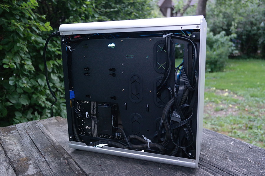 Visuaalseks ebameeldivuseks leidsime toiteploki, millel enamasti on külje peal kleeps, mis ei ole just kõige ilusam ja omab tavaliselt tehnilist infot, mida väga ei tahaks just reklaamida oma klaasit korpuse puhul. Selle tõttu soovtaksime kasutajal leida midagi, millega külg kinni katta, et süsteemil silm paremini puhkaks ja ei riivaks alati nägemist kui süsteemi imetled.