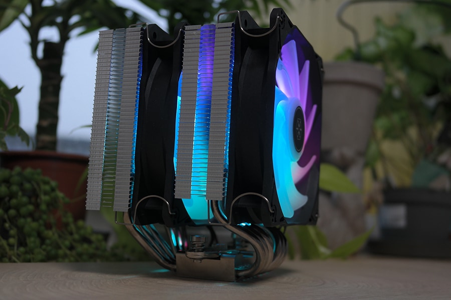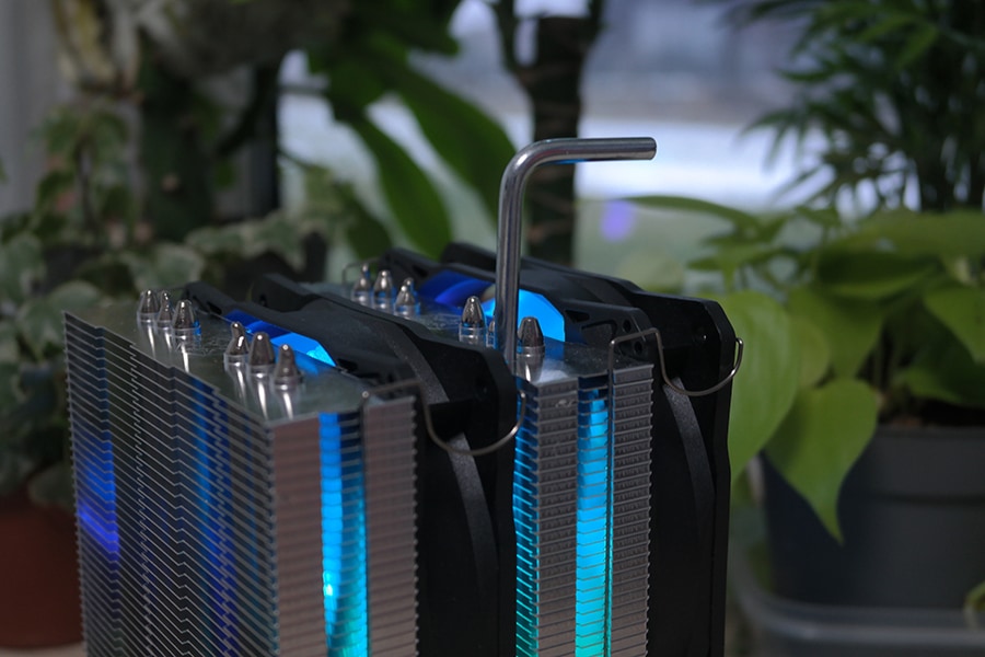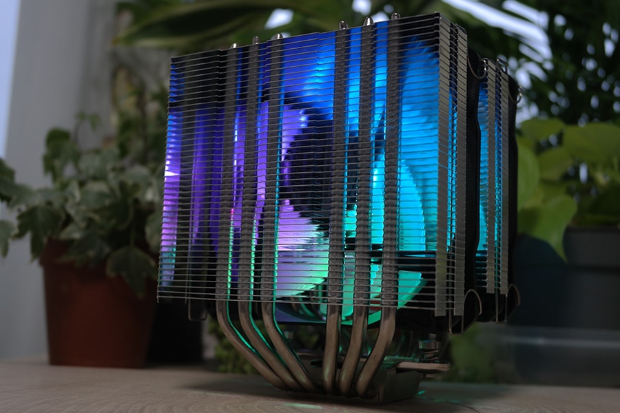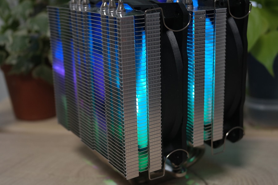 Valgustuse poolest on jahuti väga mõnusa sujuva valgustusega. Ventilaatoril on kokku küll ainult kaheksa tulukest, kuid neid on raske eraldada ja annavad väga mõnusa kuma. Ventilaatori tiivikud ja mootori katteosa teevad head tööd, et valgustust sujuvalt edasi kanda kogu ventilaatori ulatuses. Ainuke mida ARGB rakenduse juures välja tuua oleks eredus, et pigem on valgustus mahe ja sujuv, kuid mitte nüüd kõige eredam nagu mõned kallima otsa ventilaatorite puhul.