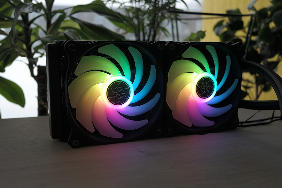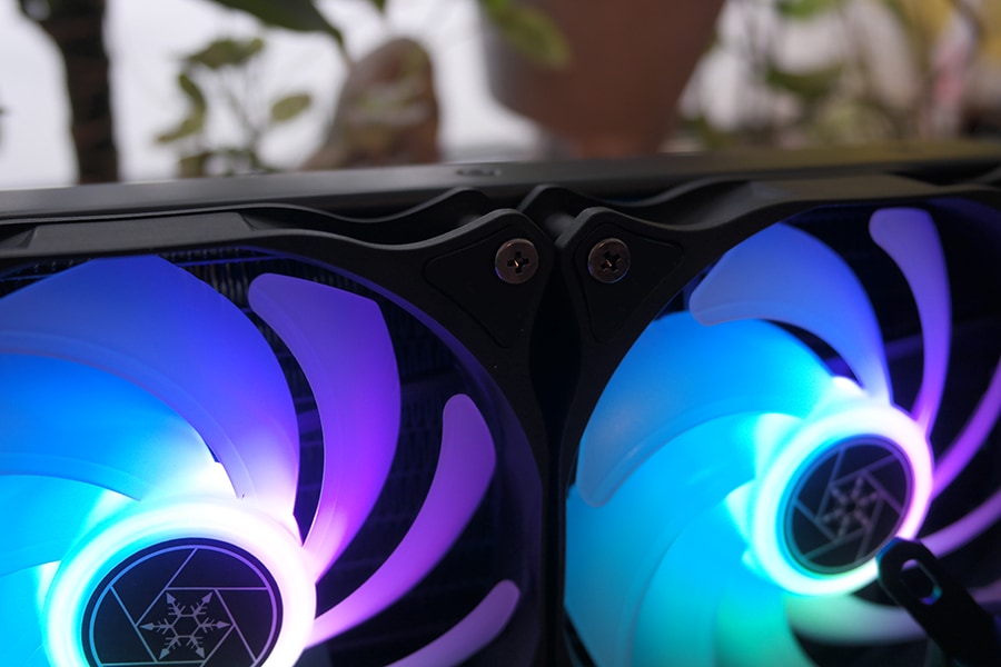 Olenevalt SilverStone PF ARGB jahuti versioonist saab radiaatorile paigutada ühe, kaks või kolm 120 mm ventilaatorit. SilverStone tarnib oma APA1225H12 ventilaatoreid, mis on identsed Air Blazer 120 ventilaatoriga, mida ettevõte turustab eraldiseisva kaubana. Ventilaatoritel on hüdrolaagrimootor, mis tagab madala mürataseme ja vibratsioonivastased kinnituspadjad. Üheksa kitsast ribi viitavad sellele, et ventilaator on mõeldud suure vooluhulga ja madala rõhu jaoks, mis peaks suhteliselt õhukesi radiaatoreid arvestades hea olema.