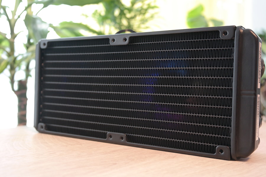 Radiaatorid põhinevad tüüpiliselt kahekäigulise ristvooluga konstruktsioonil, millel on õhukestele piklikele torudele joodetud pisikesed ribid. See on AIO süsteemide kõige domineerivam radiaatori disain ja seda õigustatult, kuna see pakub piiratud proportsioonides parimat efektiivsust ja temperatuurierinevusi, millega AIO jahutid peavad toime tulema. Radiaator on kõigest 26 mm paksusene, mis tähendab, et jahuti koos ventilaatoritega nõuab ainult 51 mm vaba ruumi, mis suurendab ühilduvusvõimalusi.