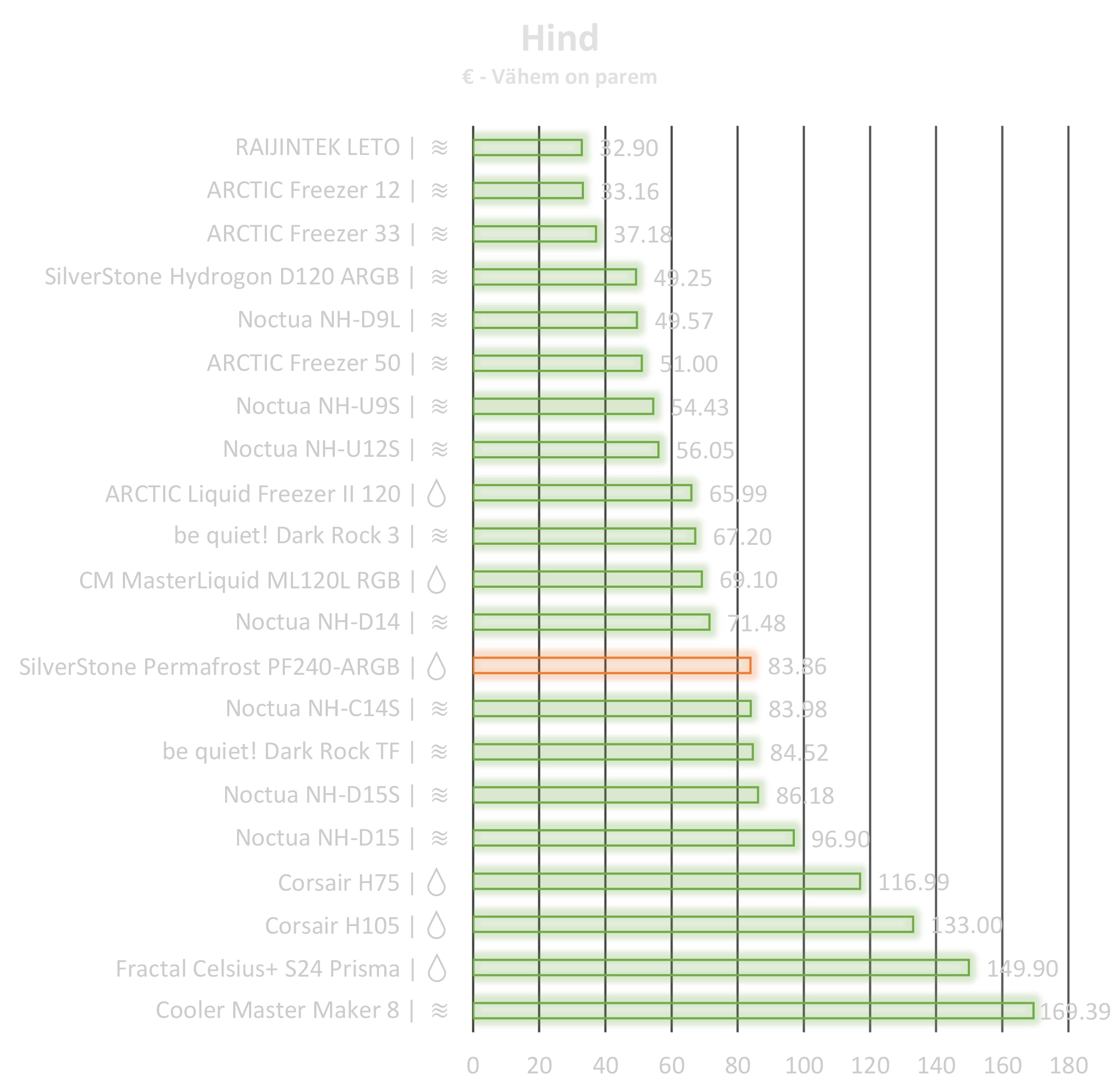 Osad jahutid on võrdlusest puudu, kuna ei ole enam müügil, seega on hinnavõrdluses ainult need, mis turult hetkel saada on. Mõne hind on mõjutatud sellest, et toote müüjat on Eestis ainult üks, mille tulemusena suhtuda sellesse võrdlusesse lihtsalt illustreeriva pilguga. Hinnad pärinevad ülevaate kirjutamise hetkel kõige väiksema hinnaga pakkujatelt HinnaVaatluse andmete põhjal.