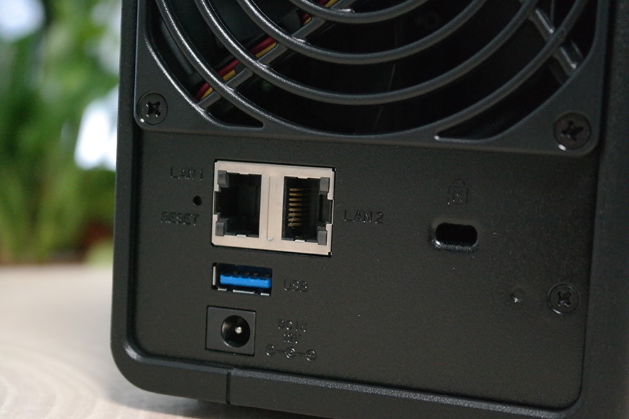 Kõvaketta kaanest paremale paiknevad märgutuled, toitenupp ja ühe puutega kopeerimisnupu. See viimane nupp on suurepärane, kui ühendada USB pulk NASiga, saab kogu USB pulga sisu kopeerida ümber. Rääkides veel pesadest siis tagant leiab veel ühe USB 3.1 pesa, Kensington turvapesa ja kaks Gigabite toega ühenduspesa.