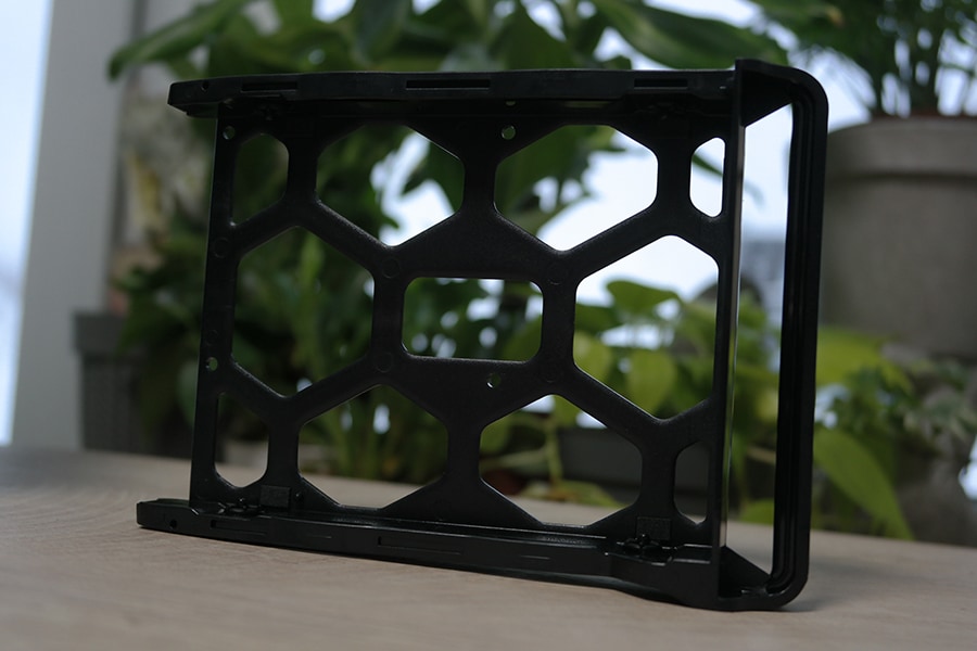 Üks tugevaid külgi Synology juures on tööriistadeta seadistamine. Kõvaketta salvestusseadme väljavõtmiseks eemalda lihtsalt hoidiku raamistiku küljelt plastikust kinnitused ning see on kõik aseta ketas hoidikusse ja paiguta plastikust ümbrised tagasi, ei mingit möllu ega sebimist - kõige tähtsam, pole vaja tillukest kruvikeerajat. Kuid selline mõnu piirdub ainult 3.5 tolliste ketastega, sest 2.5 tuleb ikkagi panna kruvidega ning 2.5 ei sa panna koos külgede plastikute eemaldamiseta, mis võivad kaduma minna, kuna peale 2.5 ketta kinnitamist ei saa kinnitust tagasi panna, kui just ei jäta seda vedelema lahtiselt NAS korpusesse.