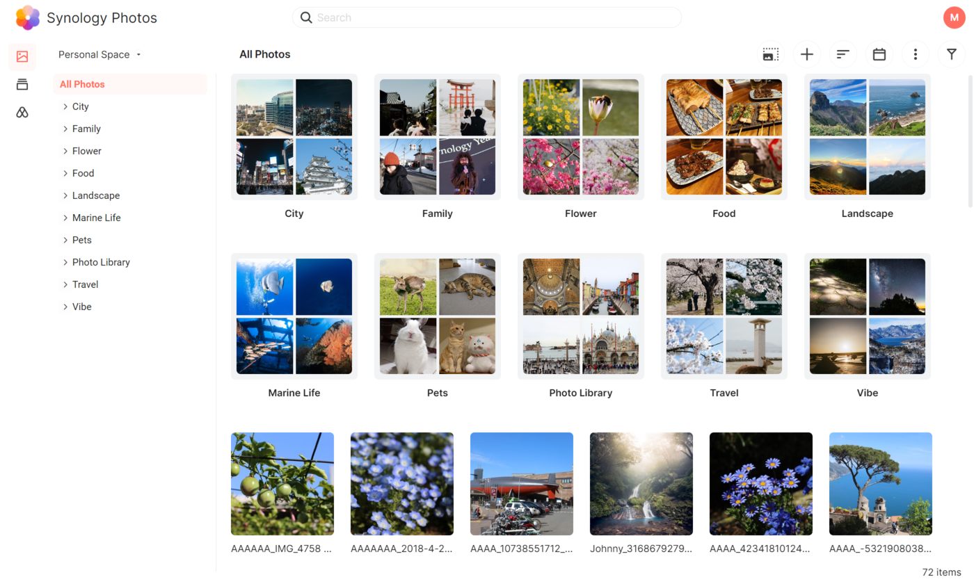 Fotode ja meedia haldamiseks on olemas Synology Photos, mis võimaldab automaatset varundust ja lihtsat organiseerimist ühtses keskkonnas. See katab enamiku igapäevastest vajadustest ning võimaldab mugavat ligipääsu erinevatest seadmetest.