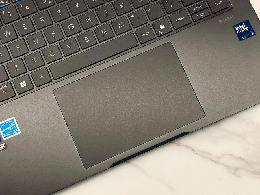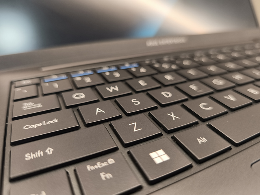 ExpertBook B5 klaviatuur jälgib ASUSe äriseeria tuttavat paigutust. Tegemist on täissuuruses chiclet-tüüpi klaviatuuriga, kus klahvidevaheline kaugus ja suurus on tasakaalus. Klahvikäik ei ole liiga lühike ega liiga pehme - vajutus on selge ning tagasiside piisavalt konkreetne, et pikem kirjutamine ei muutuks ebamugavaks.