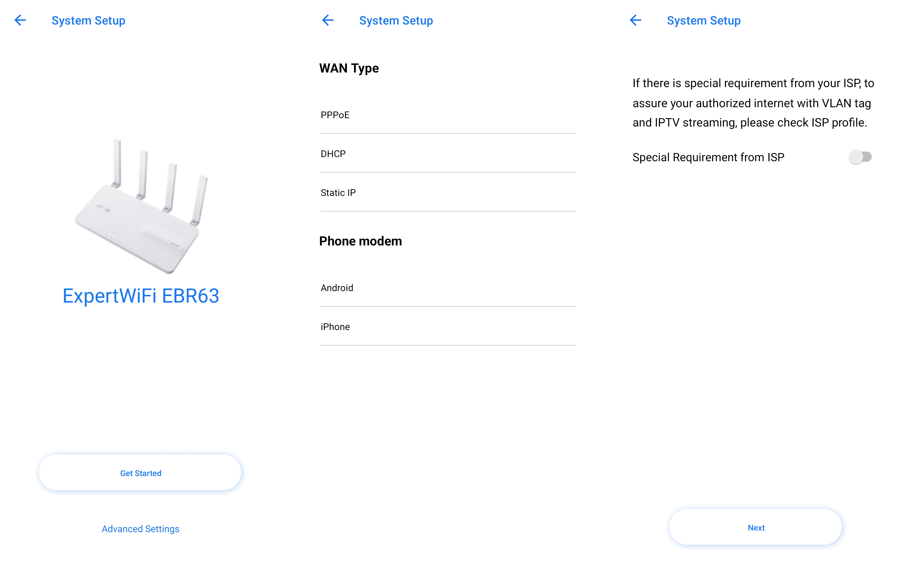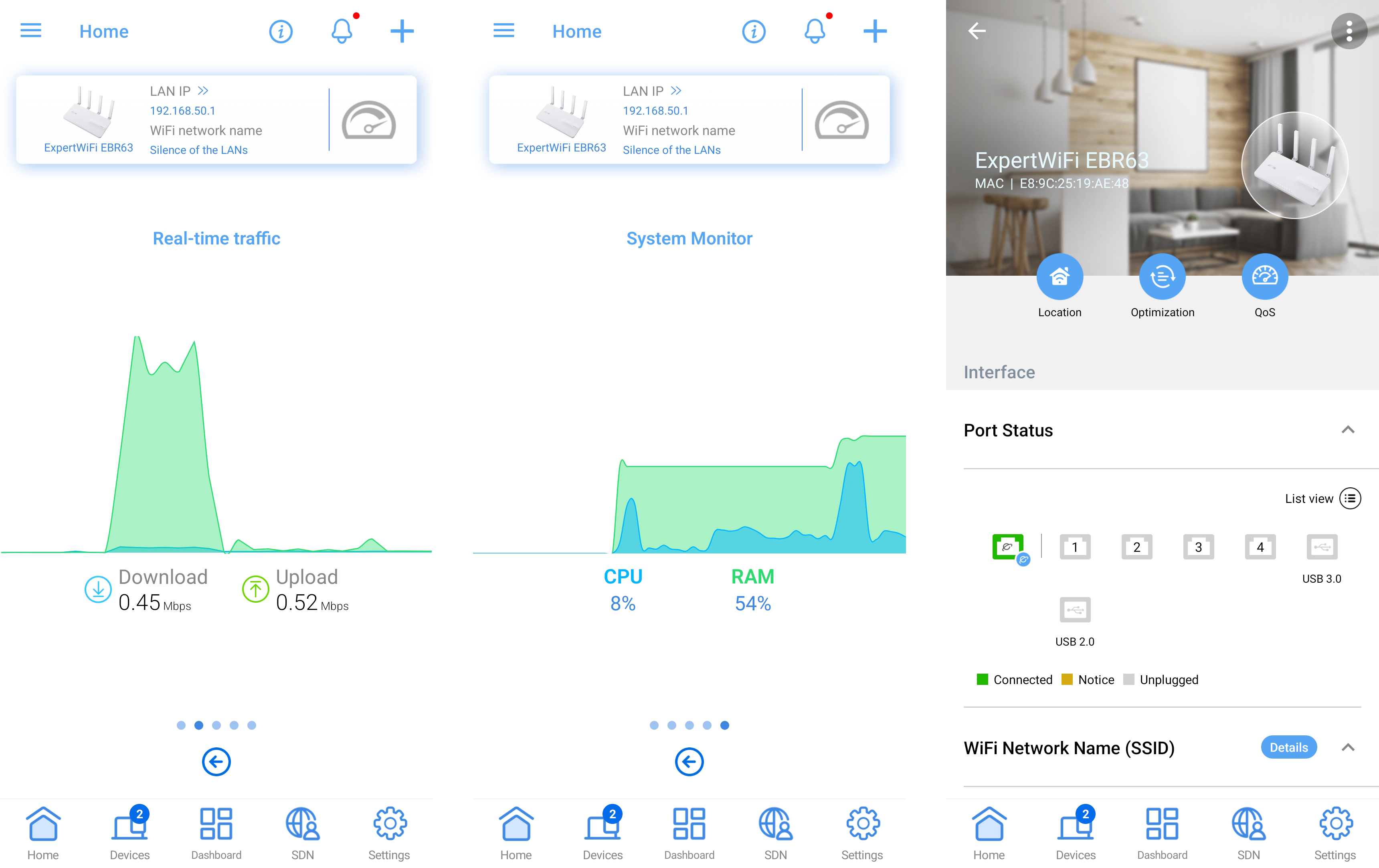 ASUSWRT kasutajaliides on üks EBR63 silmapaistvamaid omadusi. See on puhas, intuitiivne ja täis valikuid nii tavakasutajatele kui ka edasijõudnutele. Töölaud annab ülevaate võrgu olekust, ühendatud seadmetest ja võtmesätetest. Kasutajad saavad hõlpsalt liikuda menüüdes, et konfigureerida seadeid, nagu traadita krüptimine, portide edastamine ja VPN.
