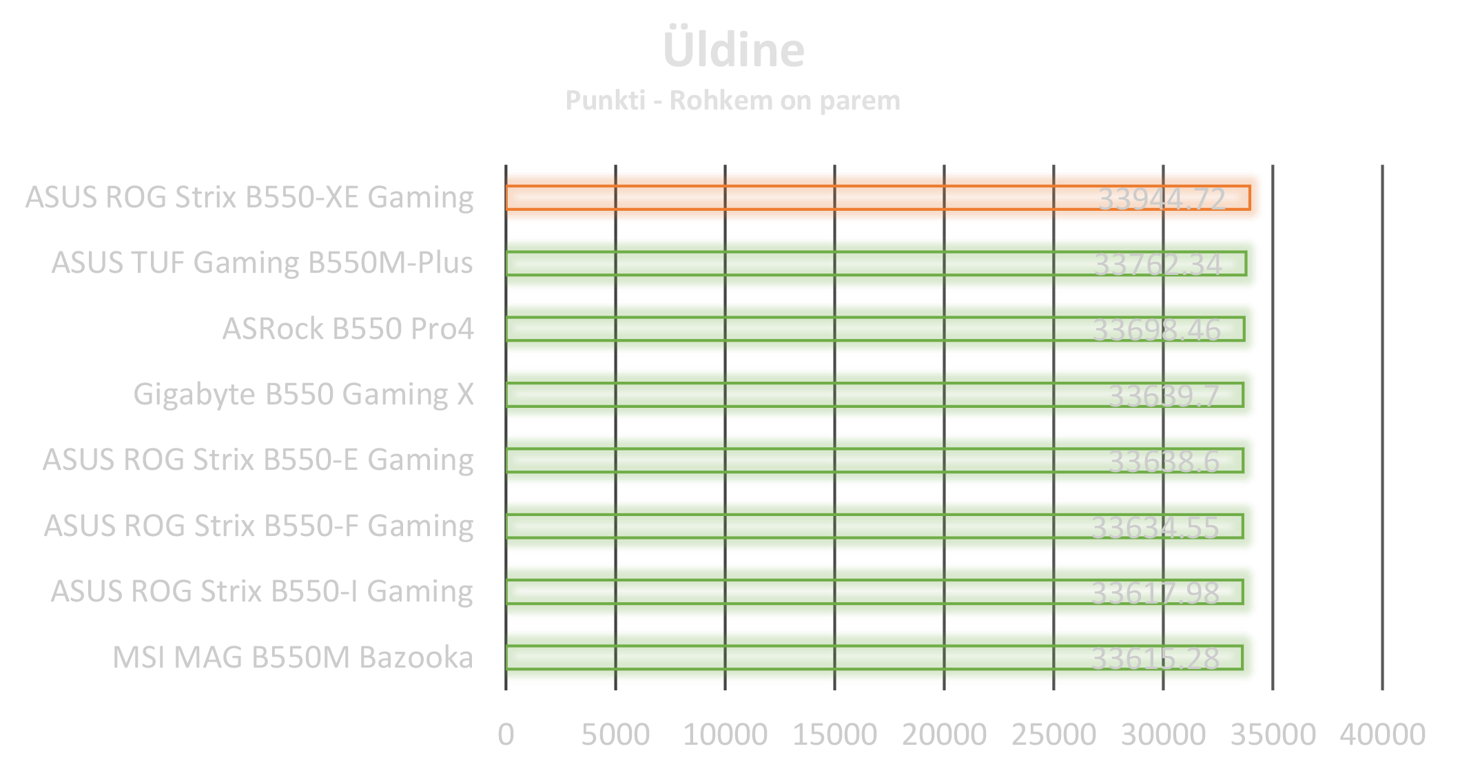 B550-XE on üks esimesi emaplaate, mida võib pidada paremaks kui osasid X570 kiibistikul põhinevaid plaate. Võrreldes teiste ASUSe B550 plaatidega on nimetatud emaplaat saanud korraliku edasilükke toite ülesehitusele, jahutusele ja üleüldiselt. Lisaks tuleb kaasa PCIe kaart, mis võimaldab laiendada andmeladustust M.2 SSD abil.