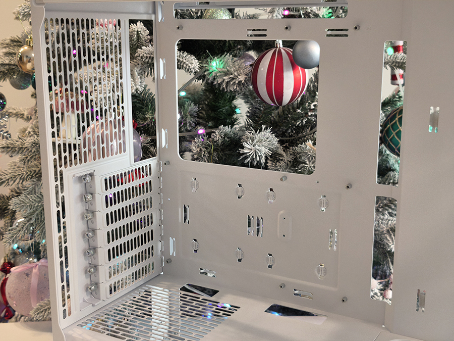 Üheks silmapaistvamaks detailiks on integreeritud GPU õhujuht. Selle asemel, et lasta sissevõtuõhul korpuse sees vabalt hajuda, suunab lahendus õhu otse graafikakaardi piirkonda. Antud lähenemine arvestab tänapäevaste süsteemide reaalsust, kus GPU on sageli suurim soojusallikas. Praktikas vähendab see vajadust ventilaatorite suure pöörlemiskiiruse järele ning aitab hoida graafikakaardi temperatuure koormuse all ühtlasemana.