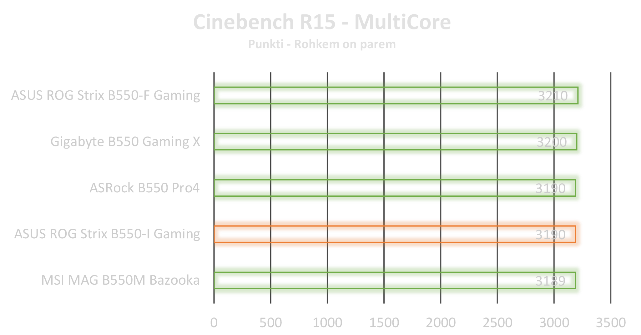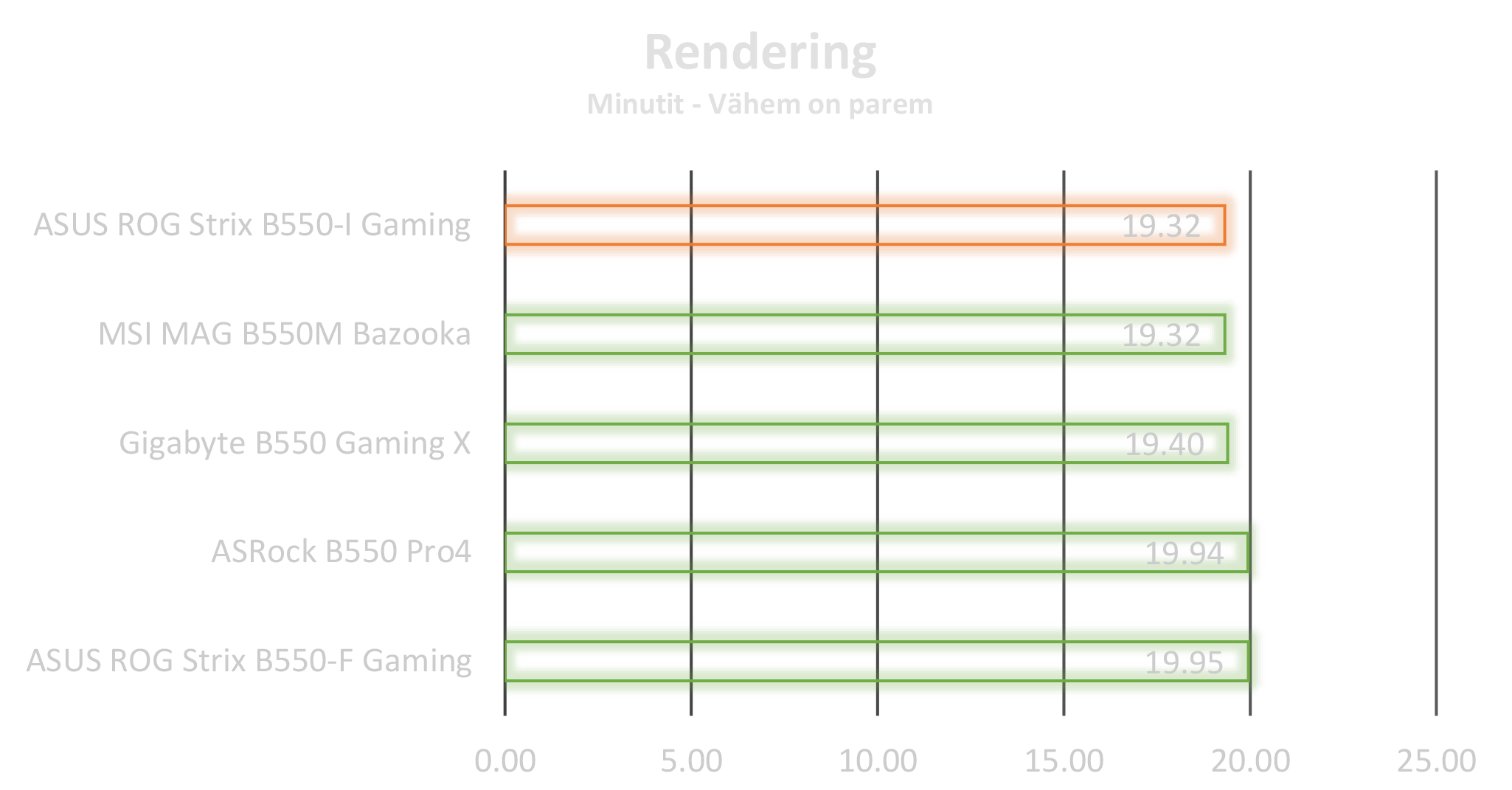 Testimine kulges stabiilselt ning ühtegi probleemi ega viga ei esinenud. Kuigi testikomplekti oleks võimalik veelgi laiendada, muutuks see ajamahukaks ning praktikas jäävad emaplaatidevahelised erinevused üsna väikesteks. Artikli lõpus olev kokkuvõttev diagramm annab kiire ja visuaalse ülevaate erinevate lahenduste suhtelisest jõudlusest, kuigi tegemist ei ole absoluutse täpsusega mõõdikuga.